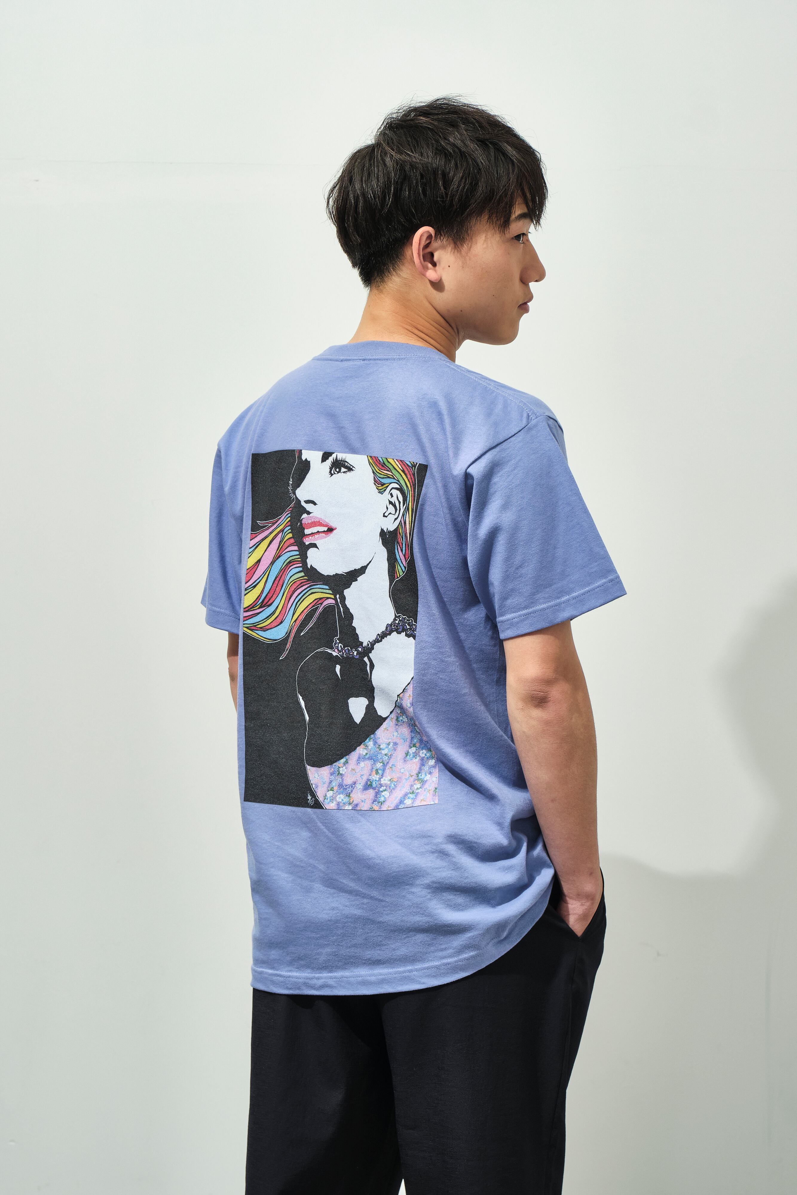 絵師トモミイラスト マリリンモンロー青 Tシャツ(ブルー)